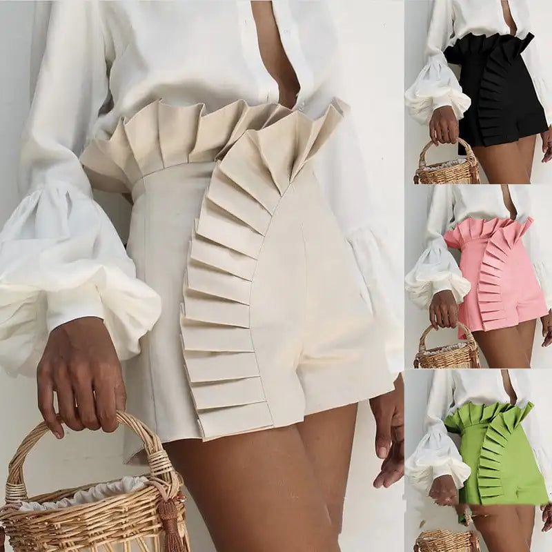 Don't miss out on adding these fashionable shorts to your collection! Elevate your summer style today with the Women's Fashion Casual Pleated Lace High-waisted Shorts.