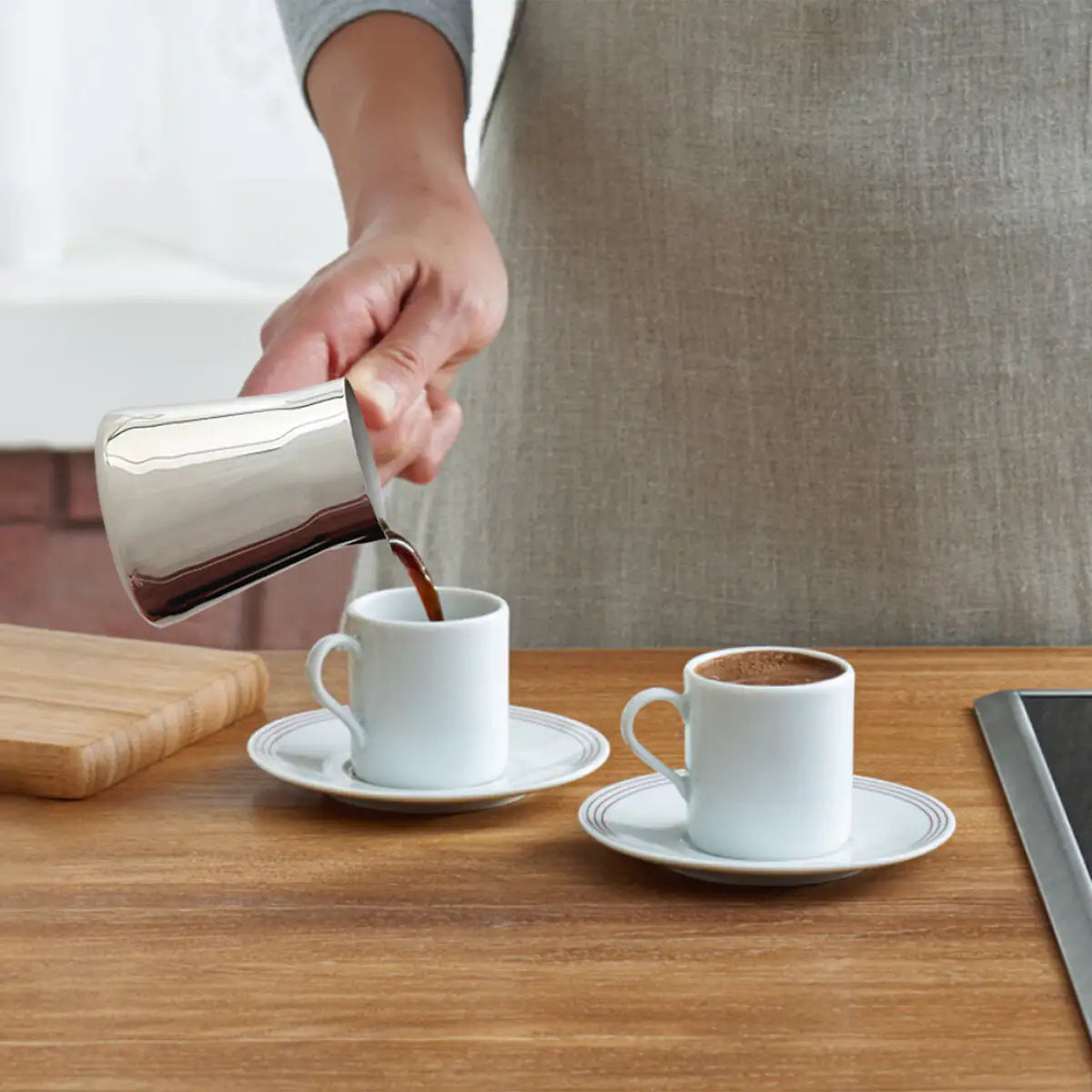 SERENK TURKISH COFFEE POT: Serenk Turkish Coffee Pot Set is made of heavy-duty 18/10 stainless-steel construction which exceedingly resistant to scratches, staining and will maintain its performance for a lifetime. Besides being durable, stainless steel is healthy, does not contain any toxic material, and is suitable for contact with food.